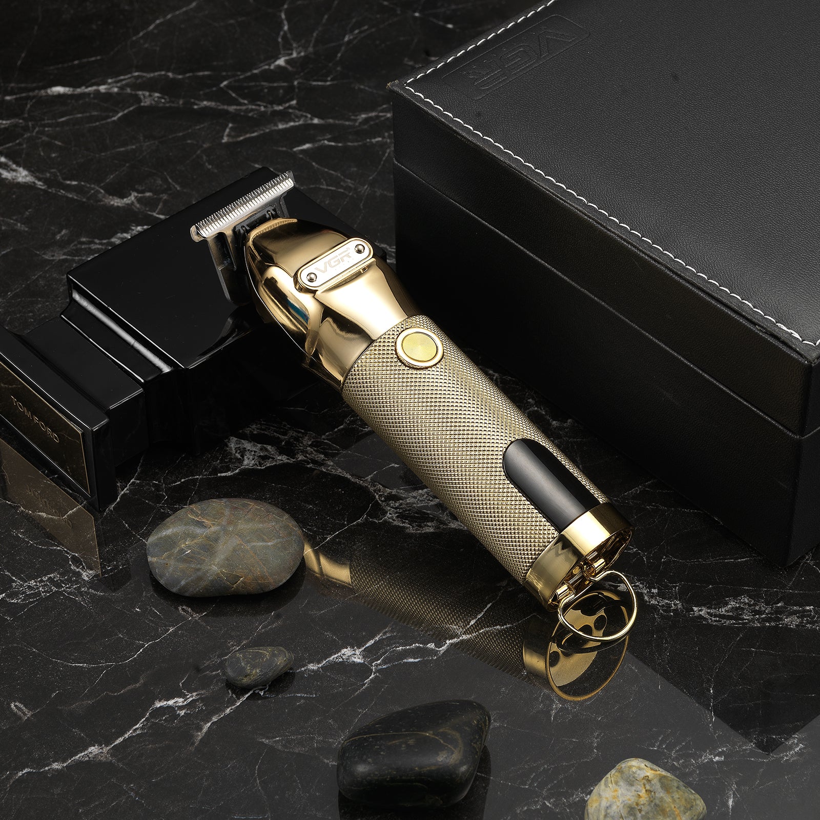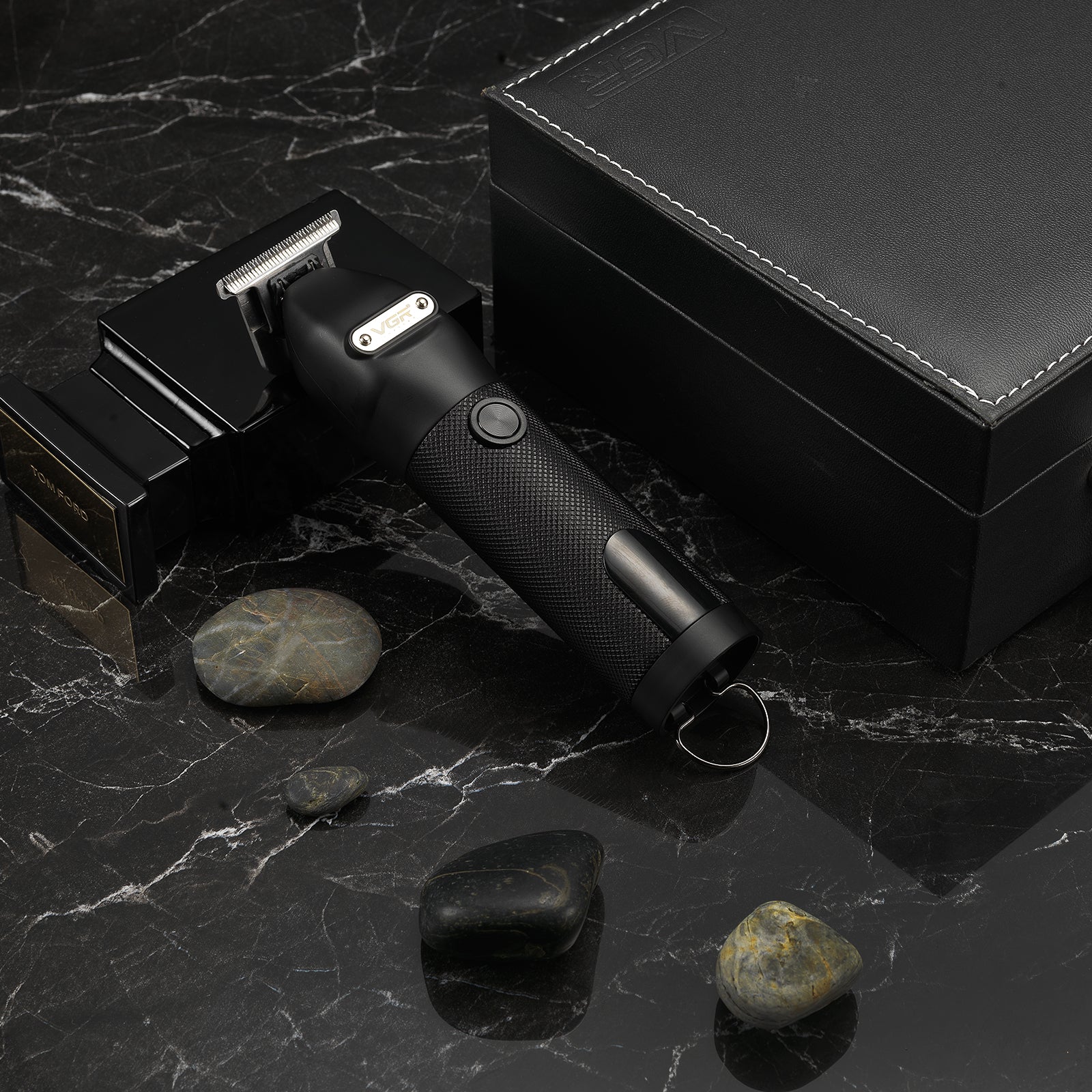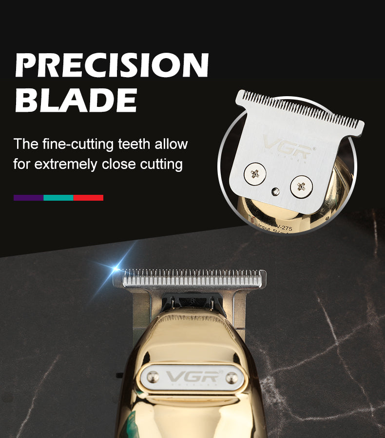 Diseñada para trabajos detallados en barbas cortas. Sus cuchillas delgadas ofrecen mayor visibilidad en cortes de precisión y remates. Se emplea comúnmente para definir el bigote, marcar líneas de diseño y trabajar áreas como el cuello, orejas y mentón.